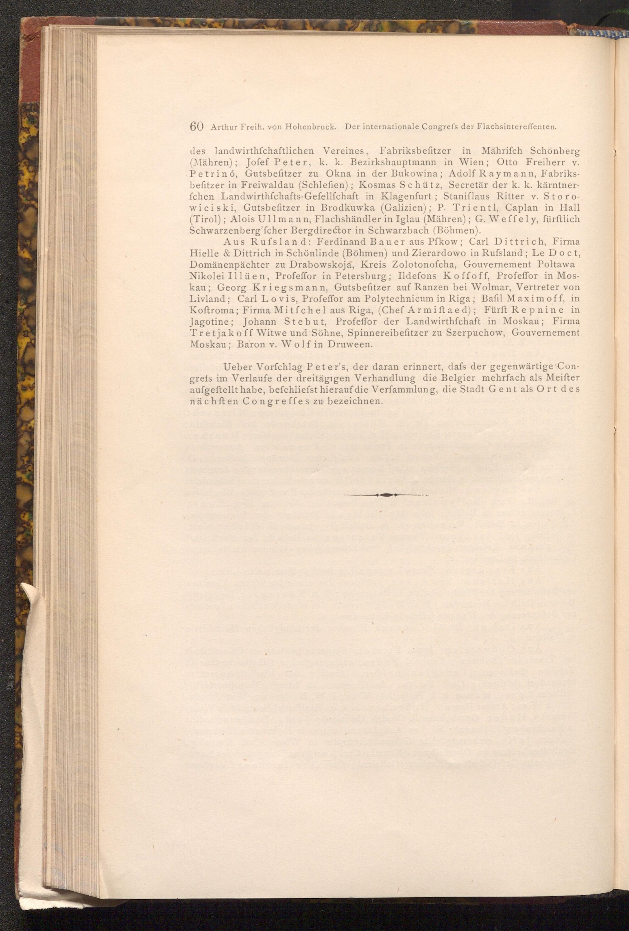 60 Arthur Freih. von Hohenbruck. Der internationale Congress der Flachsintereffenten.