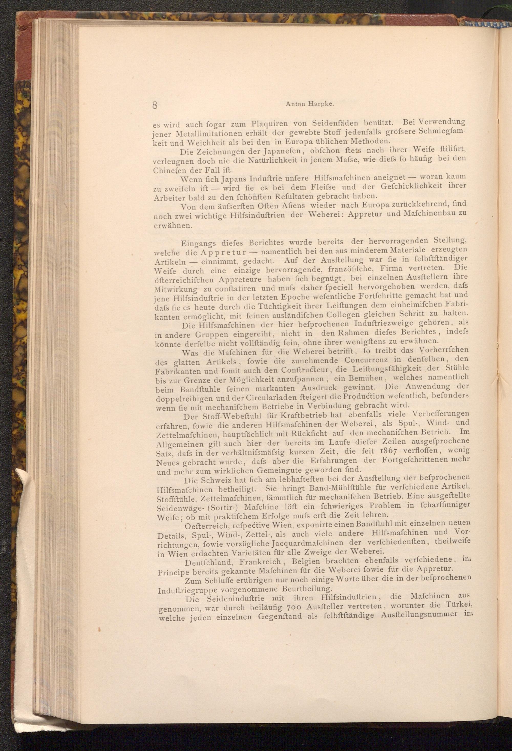 Die Seideninduftrie mit ihren Hilfsinduftrien, ihren Hilfsinduftrien, die Mafchinen genommen, war durch beiläufig 700 Ausfteller vertreten, worunter die Türkei, welche jeden einzelnen Gegenſtand als felbftftändige Ausftellungsnummer im