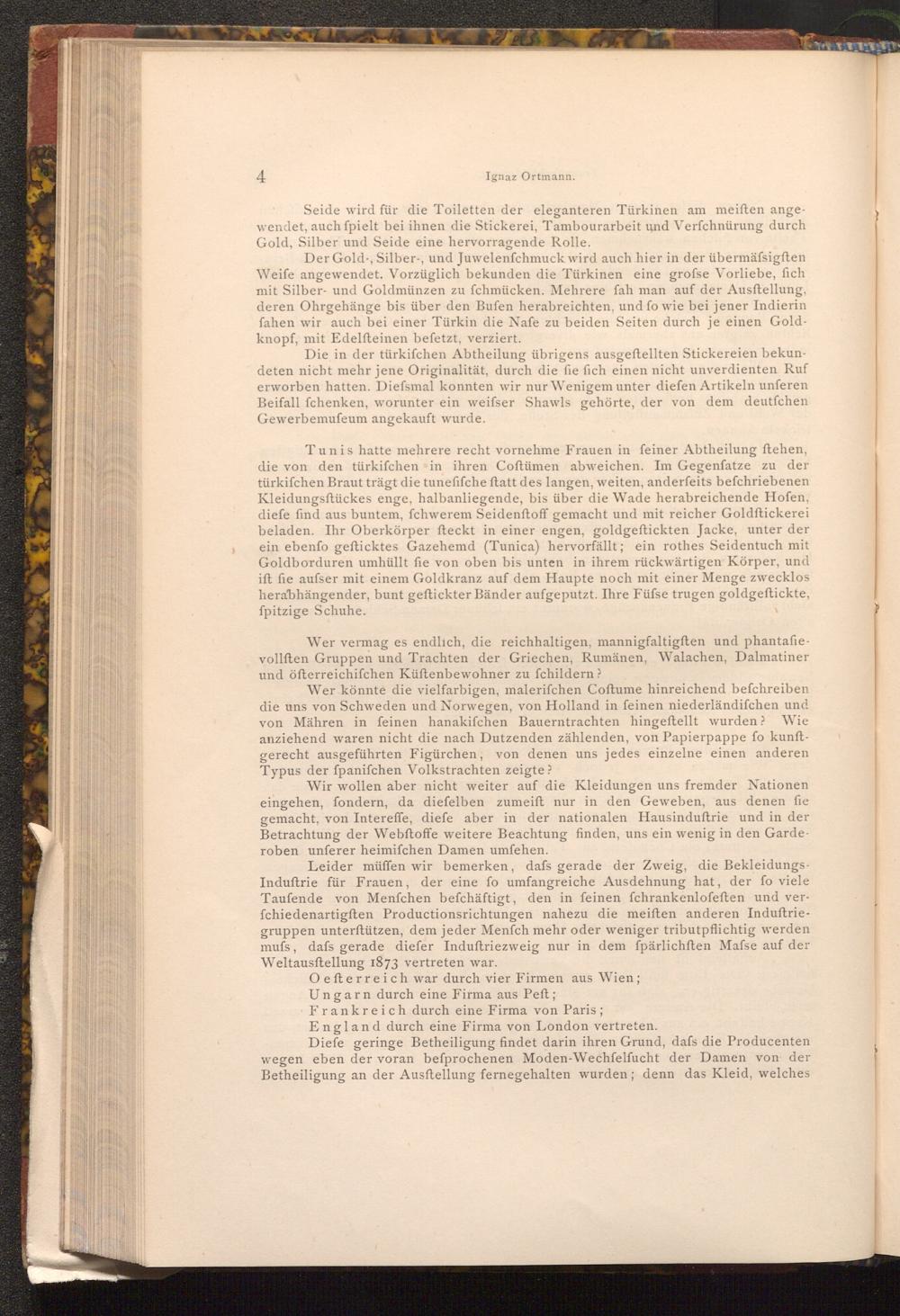 Leider müffen wir bemerken, dafs gerade der Zweig, die BekleidungsInduſtrie für Frauen, der eine fo umfangreiche Ausdehnung hat, der fo viele Taufende von Menfchen befchäftigt, den in feinen fchrankenlofeften und verfchiedenartigften Productionsrichtungen nahezu die meiften anderen Induftriegruppen unterſtützen, dem jeder Menfch mehr oder weniger tributpflichtig werden mufs, dafs gerade diefer Induftriezweig nur in dem fpärlichften Mafse auf der Weltausstellung 1873 vertreten war.