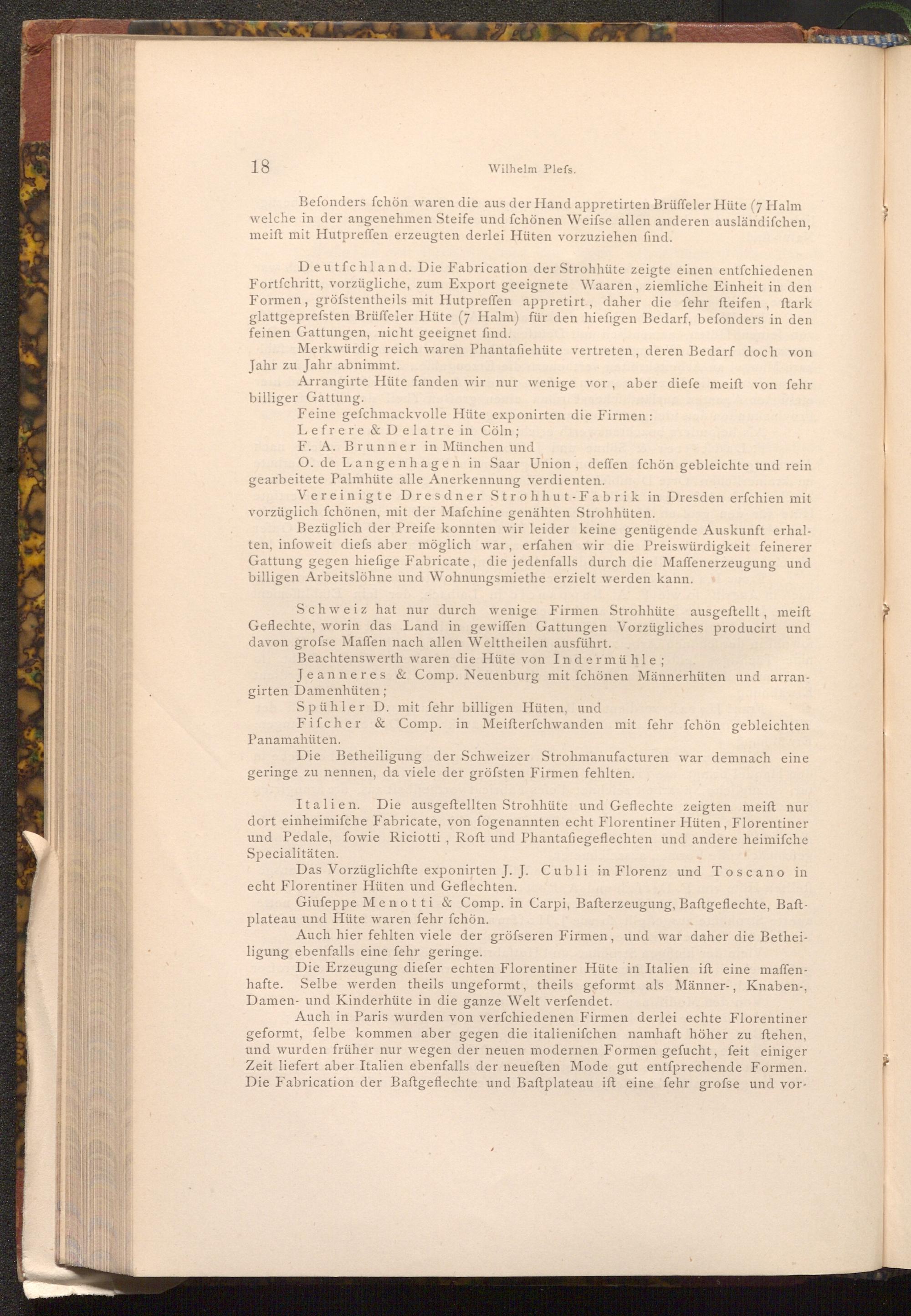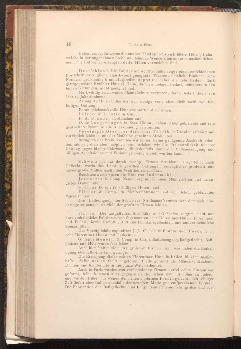 Italien. Die ausgeftellten Strohhüte und Geflechte zeigten meift nur dort einheimifche Fabricate, von fogenannten echt Florentiner Hüten, Florentiner und Pedale, fowie Riciotti, Roft und Phantafiegeflechten und andere heimifche Specialitäten.