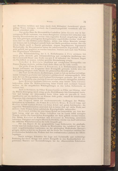 Aus Ungarn haben wir anerkennenswerthe Leiftungen der Wäfchefabrication zu vermerken: die Firmen Brachfeld, Münz, Kohn& Comp. und Hollos in Peft brachten Proben von feiner Arbeit und gutem Gefchmacke; die ungarifche Wäfchefabrication entwickelt fich in letzter Zeit auf rafche Weife, und mehrere diefer Firmen haben anfehnliche Exportgefchäfte aufzuweifen.