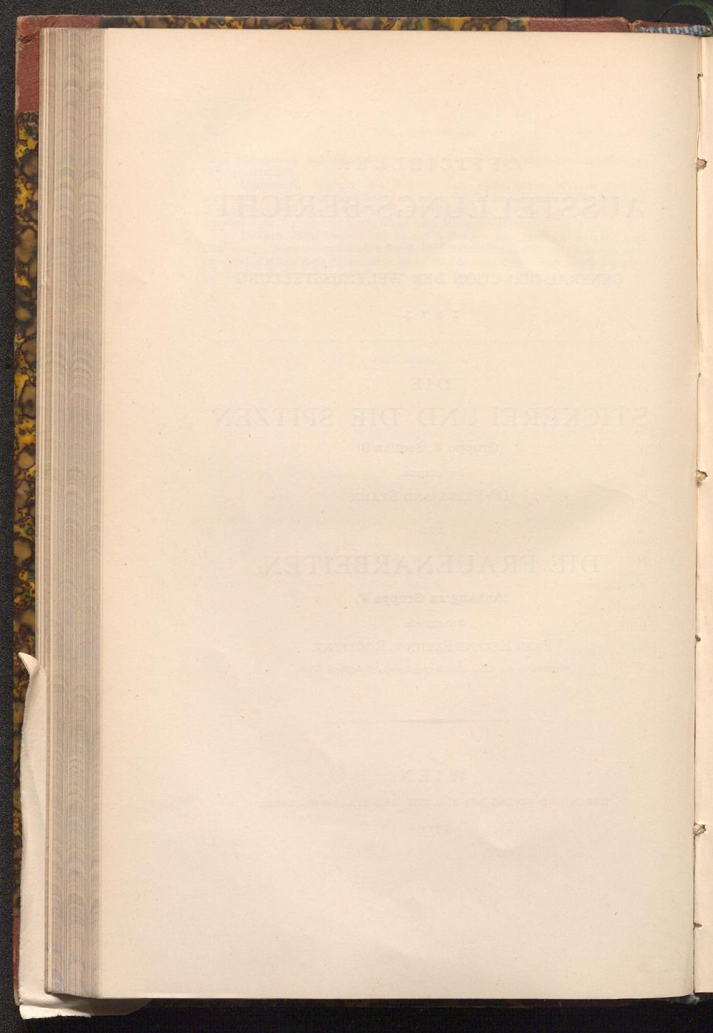 Die Stickerei und die Spitzen : (Gruppe V, Section 8) ; Bericht und Die Frauenarbeiten (Anhang zu Gruppe V) : Bericht