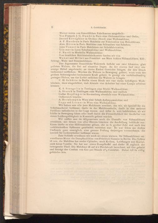 A. F. Enodeau in Paris Mafchine zur Fabrication von Holzabfätzen, Alex. Héron in Paris Mafchine zum Schrauben von Schuhen, no Jules Touzet in Paris Mafchinen zur Schuhfabrication, sme? ons w lol Giesnet in Lyon Schuhmafchine und Walkmafchine, dishab A finish F. Nardi in Marfeille Walkmafchine.bain rem bir mahsg msb the msb the sold Von deutfchen Mafchinenfabrikanten fanden wir von