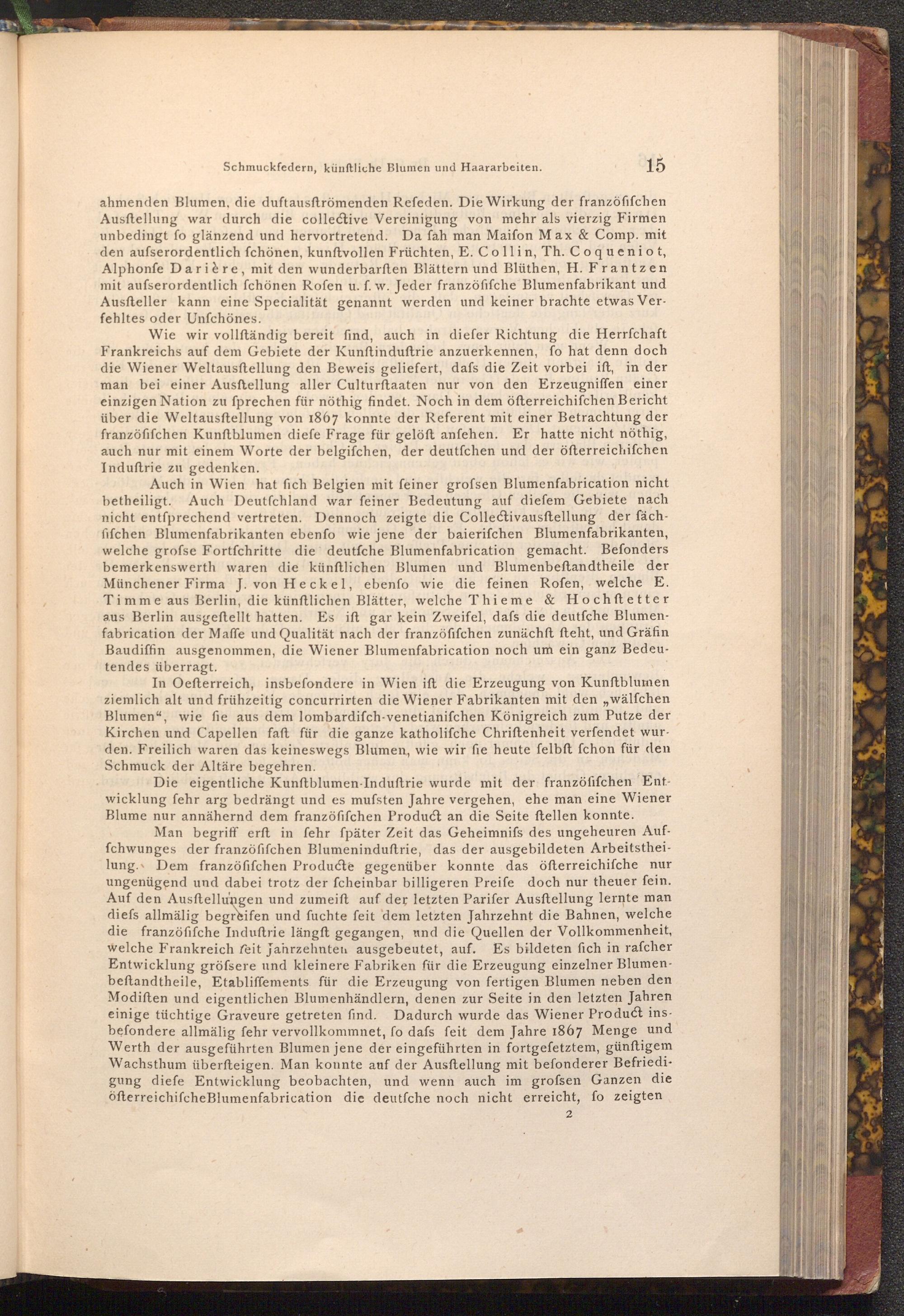 Die eigentliche Kunftblumen- Induftrie wurde mit der franzöfifchen Entwicklung fehr arg bedrängt und es mufsten Jahre vergehen, ehe man eine Wiener Blume nur annähernd dem franzöfifchen Product an die Seite ftellen konnte..