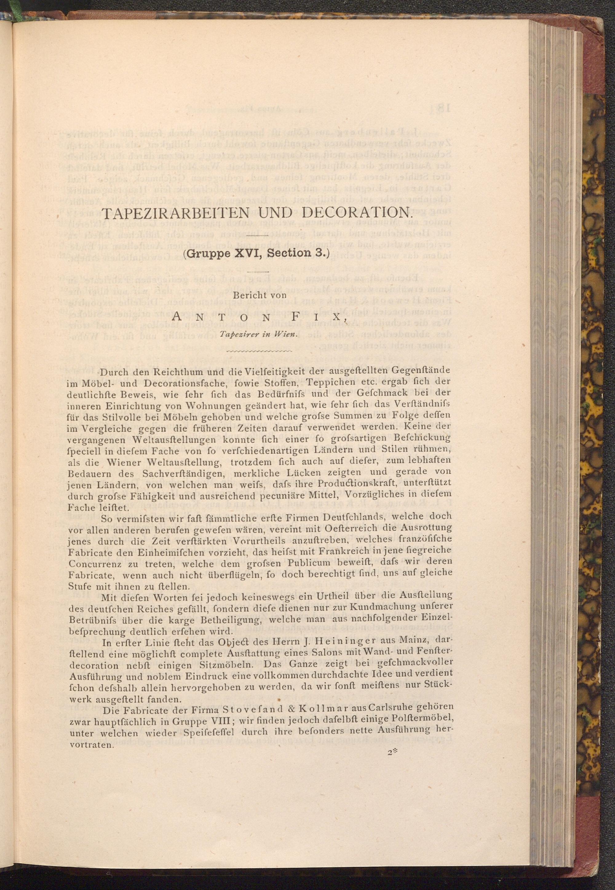 Die Fabricate der Firma Stovefand& Kollmar aus Carlsruhe gehören zwar hauptfächlich in Gruppe VIII; wir finden jedoch dafelbft einige Polstermöbel, unter welchen wieder Speifefeffel durch ihre befonders nette Ausführung her