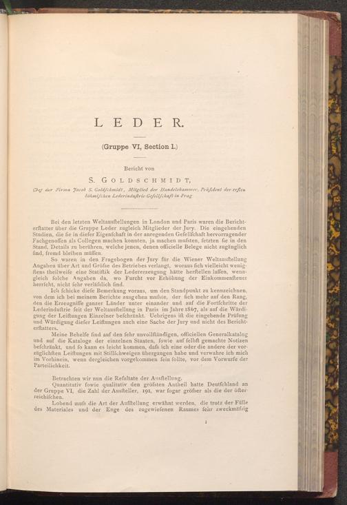 Bei den letzten Weltausftellungen in London und Paris waren die Berichterftatter über die Gruppe Leder zugleich Mitglieder der Jury. Die eingehenden Studien, die fie in diefer Eigenfchaft in der anregenden Gefellſchaft hervorragender Fachgenoffen als Collegen machen konnten, ja machen mussten, fetzten fie in den Stand, Details zu berühren, welche jenen, denen officielle Belege nicht zugänglich find, fremd bleiben müffen.
