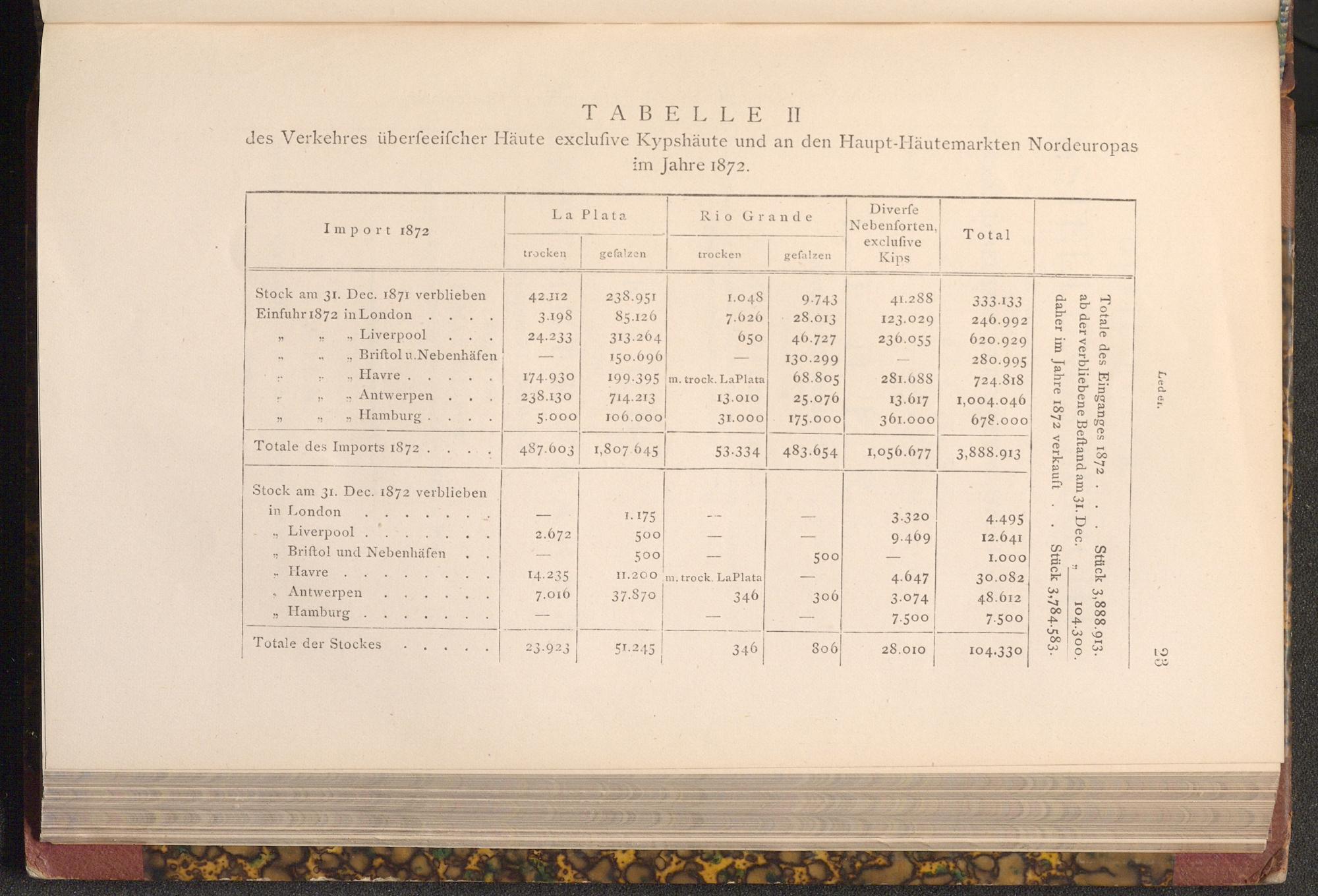 des Verkehres überfeeifcher Häute exclufive Kypshäute und an den Haupt- Häutemarkten Nordeuropas im Jahre 1872.
