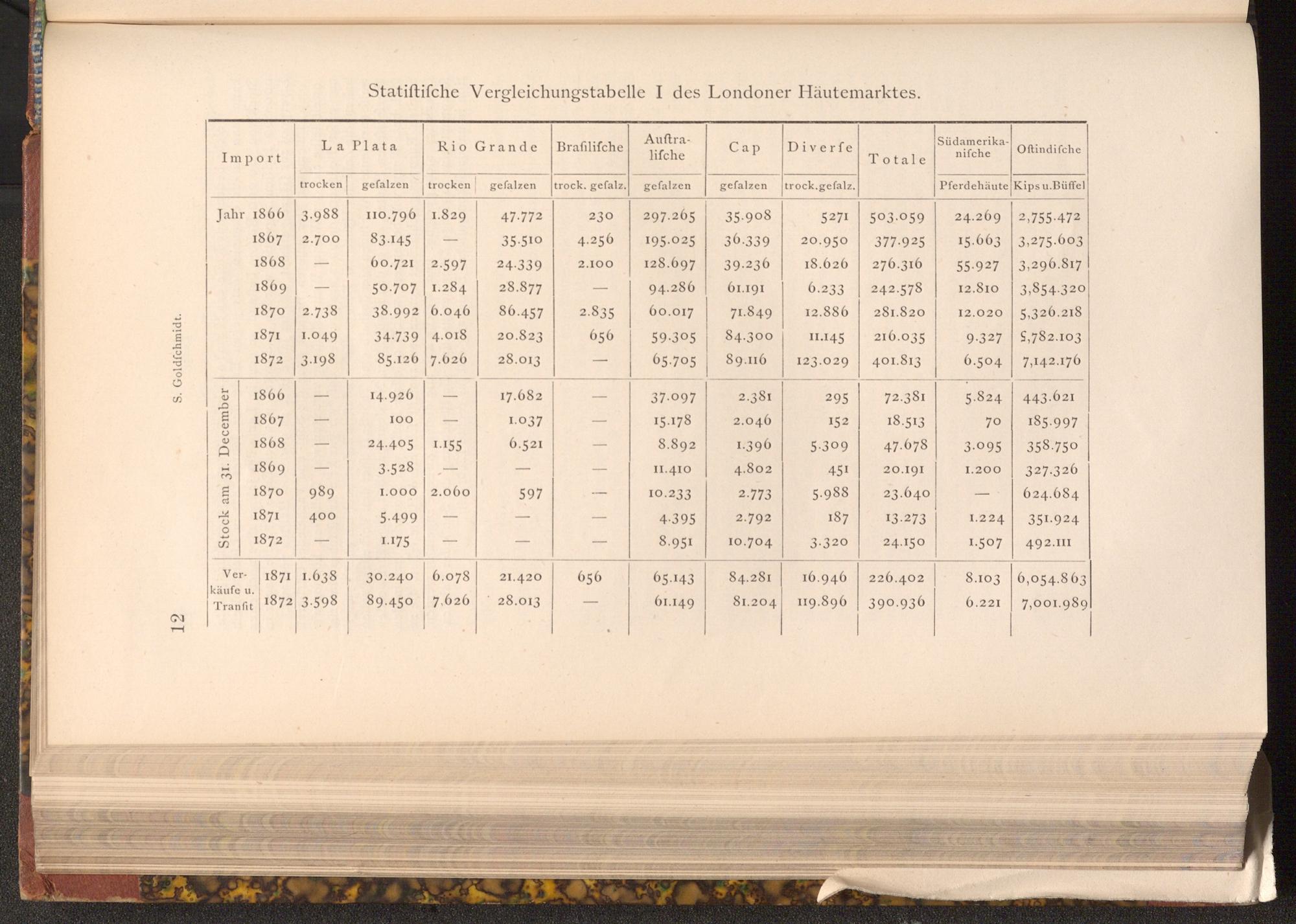 Statiſtiſche Vergleichungstabelle I des Londoner Häutemarktes.