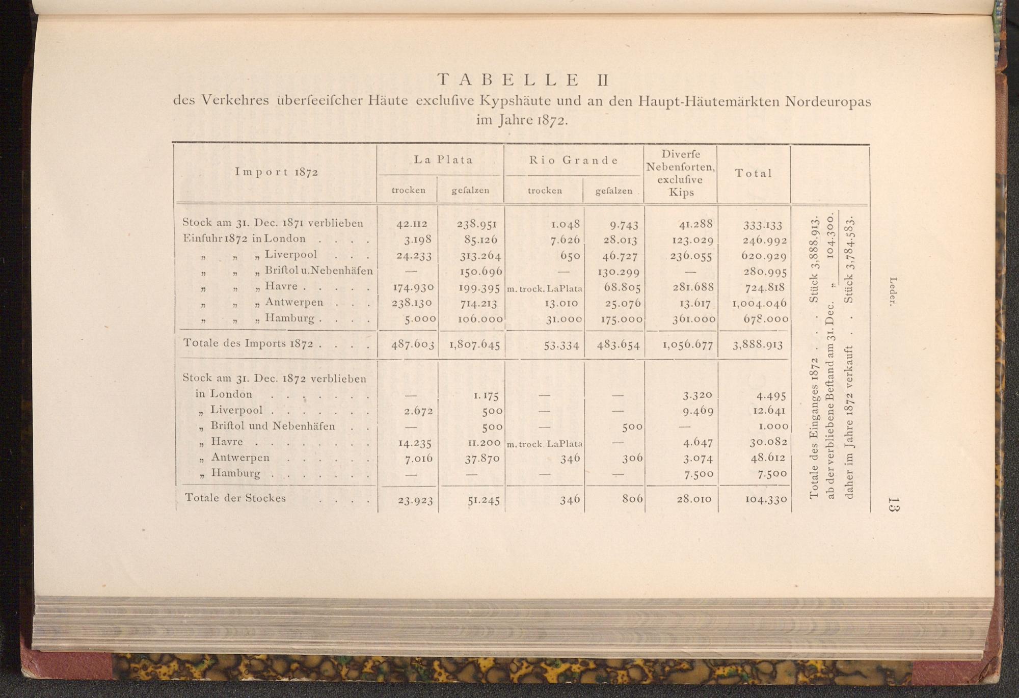 des Verkehres überfeeifcher Häute exclufive Kypshäute und an den Haupt- Häutemärkten Nordeuropas im Jahre 1872.