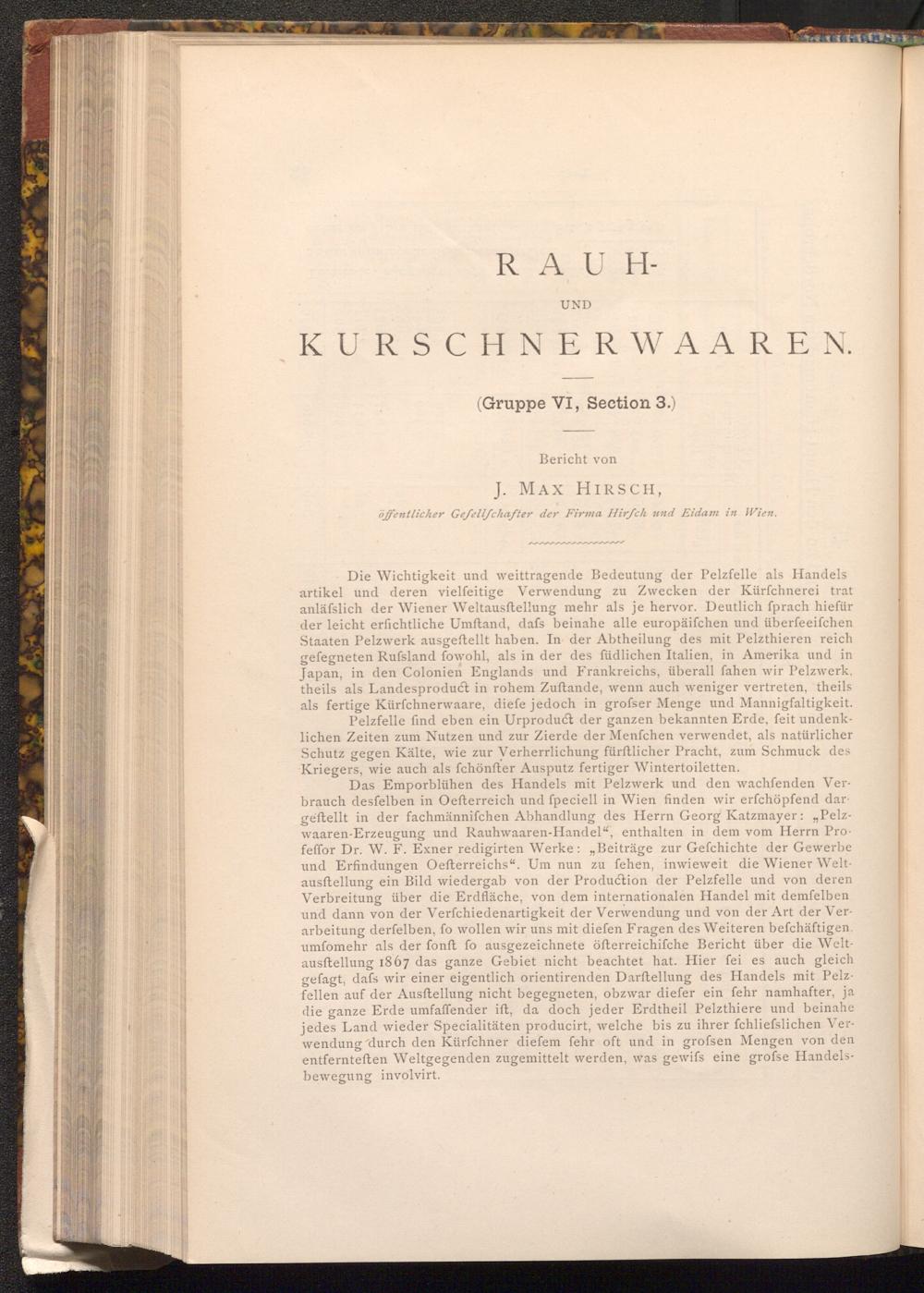 Die Wichtigkeit und weittragende Bedeutung der Pelzfelle als Handels artikel und deren vielfeitige Verwendung zu Zwecken der Kürfchnerei trat anlässlich der Wiener Weltausftellung mehr als je hervor. Deutlich fprach hiefür der leicht erfichtliche Umftand, dafs beinahe alle europäifchen und überfeeifchen Staaten Pelzwerk ausgeftellt haben. In der Abtheilung des mit Pelzthieren reich gefegneten Rufsland fowohl, als in der des füdlichen Italien, in Amerika und in Japan, in den Colonien Englands und Frankreichs, überall fahen wir Pelzwerk, theils als Landesproduct in rohem Zuftande, wenn auch weniger vertreten, theils als fertige Kürfchnerwaare, diefe jedoch in grofser Menge und Mannigfaltigkeit. Pelzfelle find eben ein Urproduct der ganzen bekannten Erde, feit undenklichen Zeiten zum Nutzen und zur Zierde der Menfchen verwendet, als natürlicher Schutz gegen Kälte, wie zur Verherrlichung fürftlicher Pracht, zum Schmuck des Kriegers, wie auch als fchönfter Ausputz fertiger Wintertoiletten.