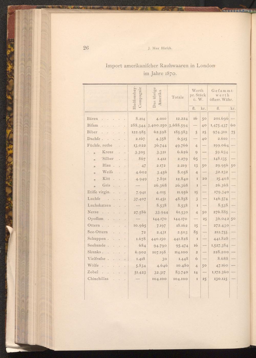 Import amerikanifcher Rauhwaaren in London
