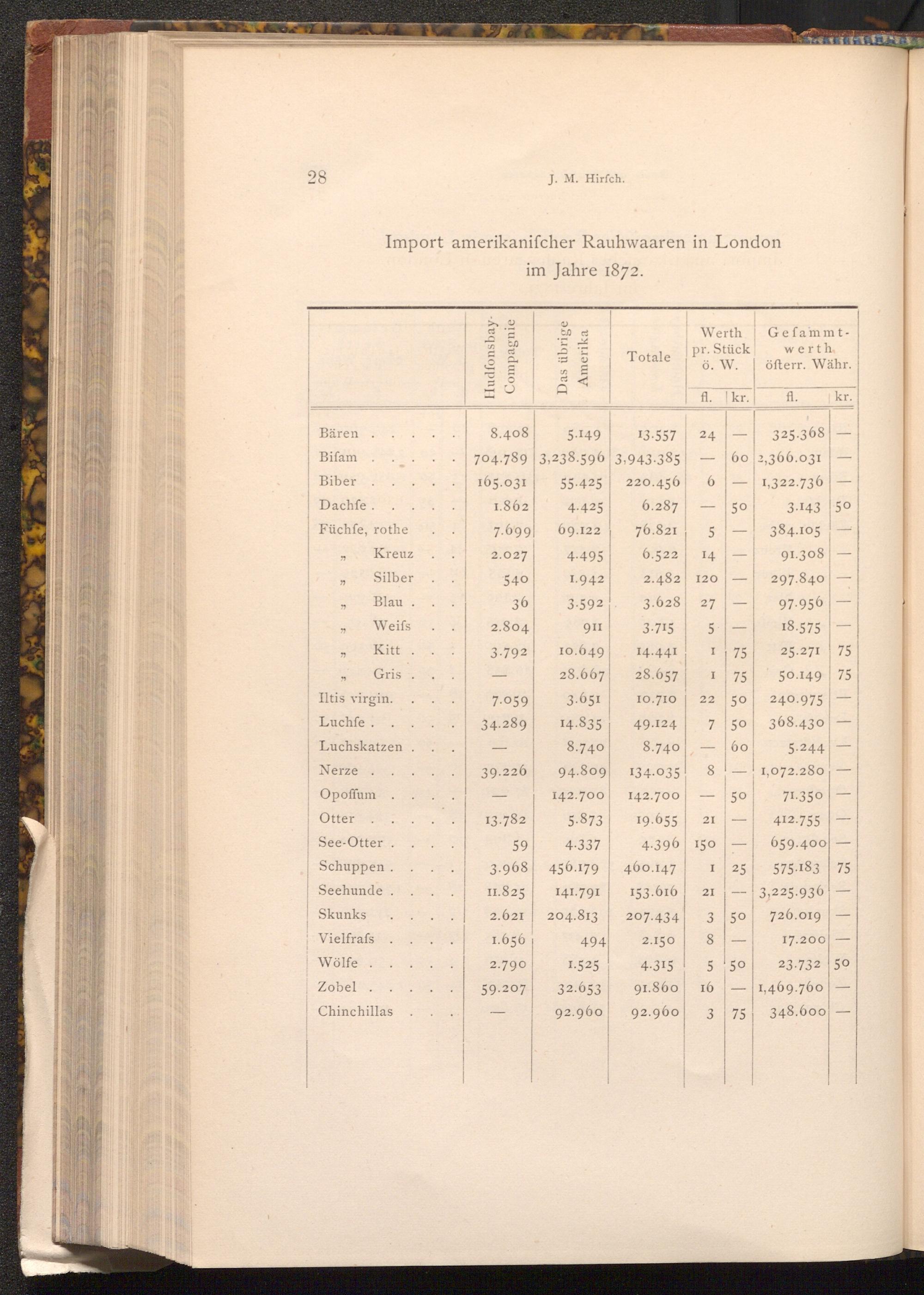 Import amerikanifcher Rauhwaaren in London