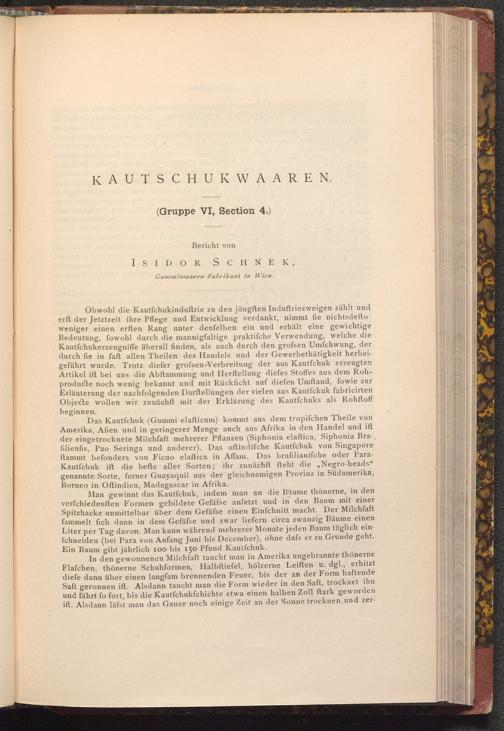 Obwohl die Kautfchukinduftrie zu den jüngsten Induftriezweigen zählt und erft der Jetztzeit ihre Pflege und Entwicklung verdankt, nimmt fie nichtsdeftoweniger einen erften Rang unter denfelben ein und erhält eine gewichtige Bedeutung, fowohl durch die mannigfaltige praktiſche Verwendung, welche die Kautfchukerzeugniffe überall finden, als auch durch den grofsen Umfchwung, der durch fie in faft allen Theilen des Handels und der Gewerbethätigkeit herbeigeführt wurde. Trotz diefer grofsen Verbreitung der aus Kautfchuk erzeugten Artikel ift bei uns die Abftammung und Herftellung diefes Stoffes aus dem Rohproducte noch wenig bekannt und mit Rückficht auf diefen Umftand, fowie zur Erläuterung der nachfolgenden Darftellungen der vielen aus Kautfckuk fabricirten Objecte wollen wir zunächst mit der Erklärung des Kautfchuks als Rohftoff beginnen.