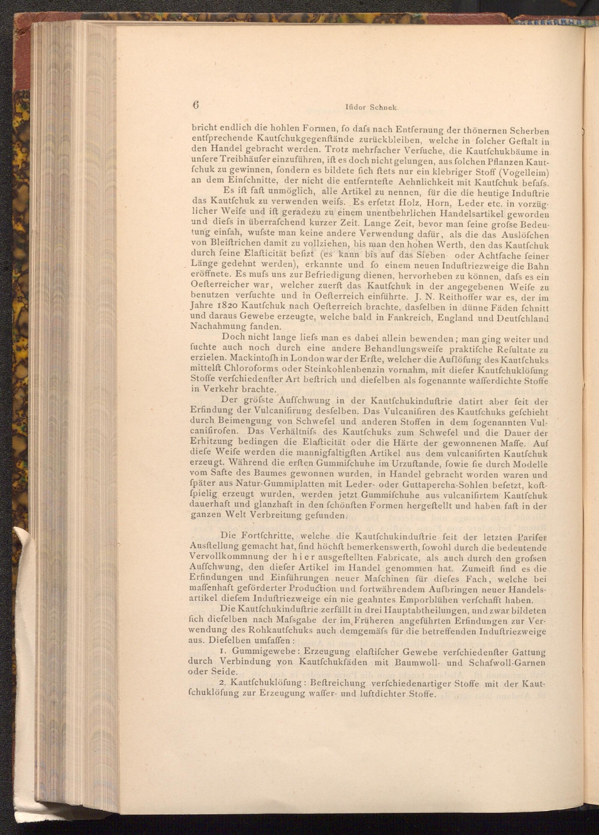 Die Kautfchukinduftrie zerfällt in drei Hauptabtheilungen, und zwar bildeten fich diefelben nach Mafsgabe der im Früheren angeführten Erfindungen zur Verwendung des Rohkautfchuks auch demgemäfs für die betreffenden Induftriezweige aus. Diefelben umfaffen: