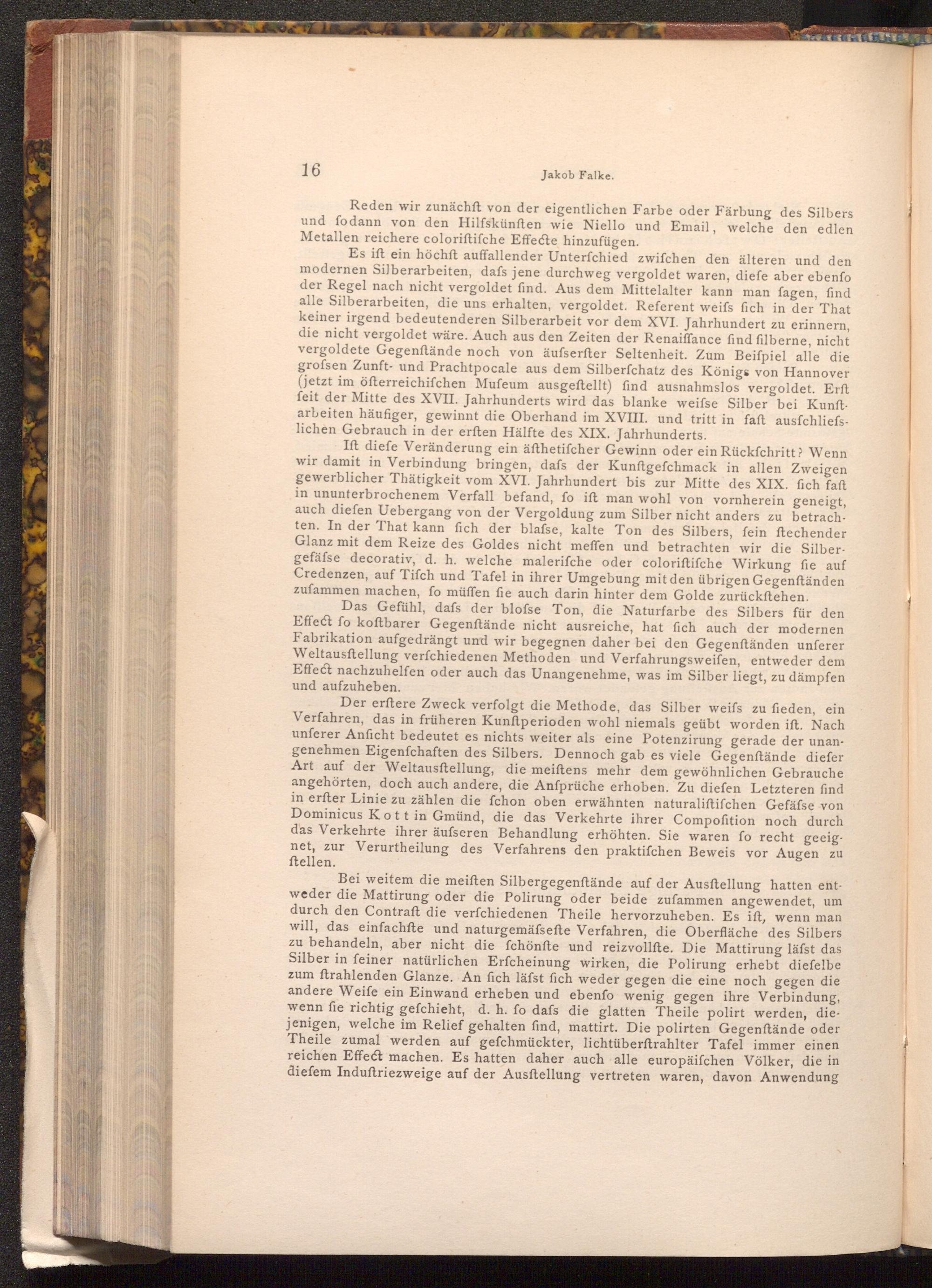 Das Gefühl, dafs der blofse Ton, die Naturfarbe des Silbers für den Effect fo koftbarer Gegenftände nicht ausreiche, hat fich auch der modernen Fabrikation aufgedrängt und wir begegnen daher bei den Gegenftänden unferer Weltausftellung verfchiedenen Methoden und Verfahrungsweifen, entweder dem Effect nachzuhelfen oder auch das Unangenehme, was im Silber liegt, zu dämpfen und aufzuheben.