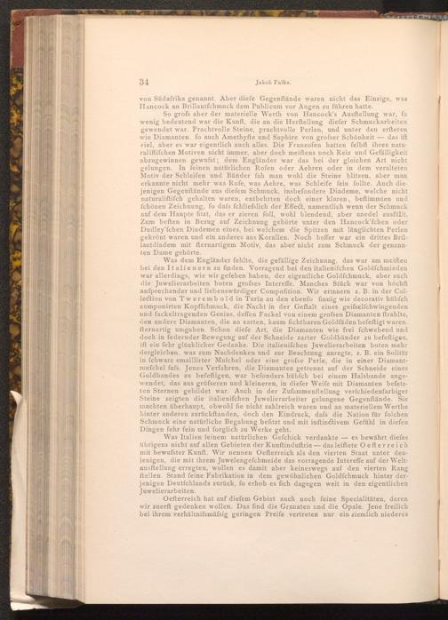 Was Italien feinem natürlichen Gefchick verdankte es bewährt diefes übrigens nicht auf allen Gebieten der Kunftinduftrie- das leiftete O efterreich mit bewufster Kunft. Wir nennen Oefterreich als den vierten Staat unter denjenigen, die mit ihrem Juwelengefchmeide das vorragende Intereffe auf der Weltausftellung erregten, wollen es damit aber keineswegs auf den vierten Rang ftellen. Stand feine Fabrikation in dem gewöhnlichen Goldfchmuck hinter derjenigen Deutſchlands zurück, fo erhob es fich dagegen weit in den eigentlichen Juwelierarbeiten.