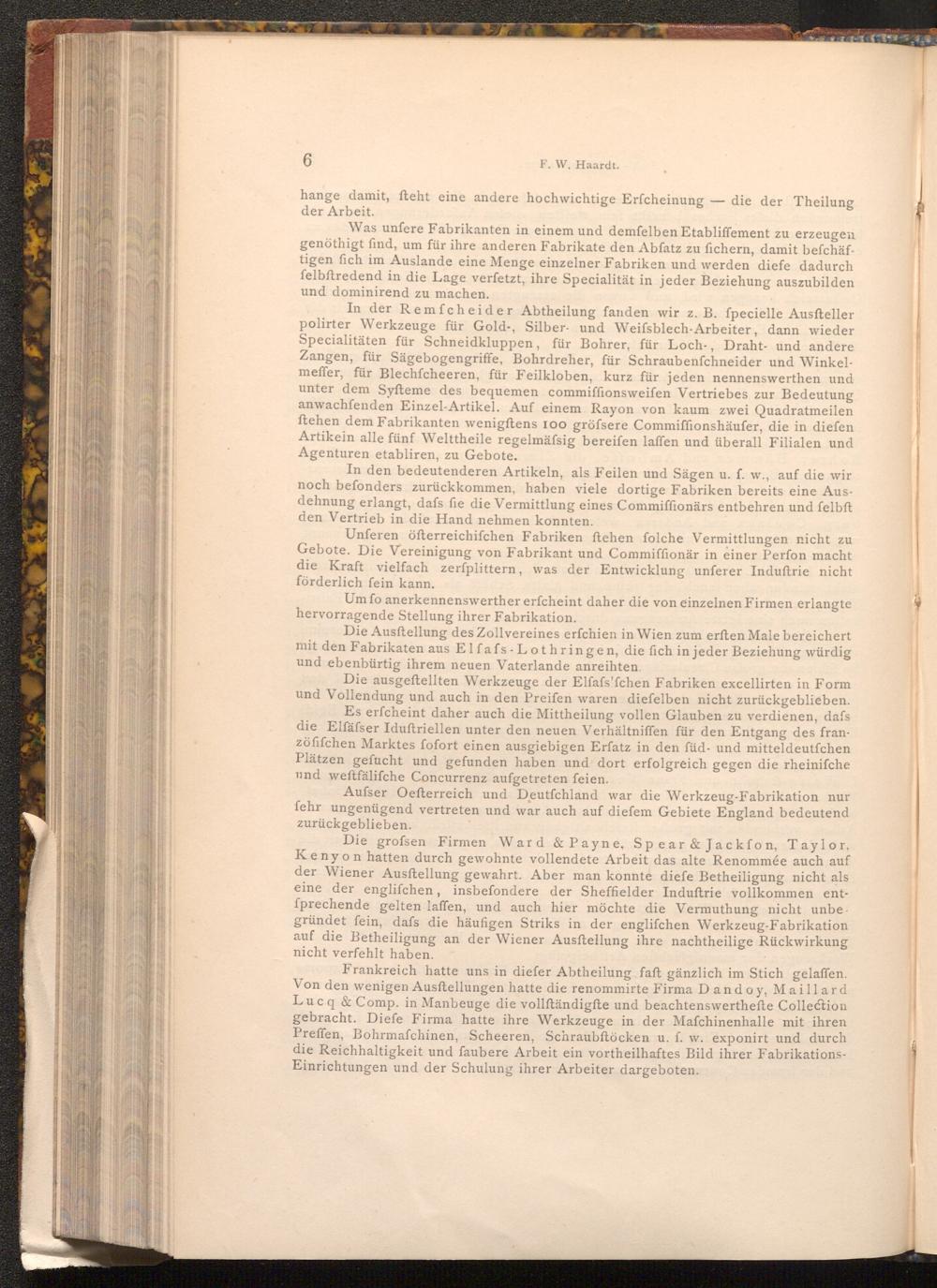Was unfere Fabrikanten in einem und demfelben Etabliffement zu erzeugen genöthigt find, um für ihre anderen Fabrikate den Abfatz zu fichern, damit befchäftigen fich im Auslande eine Menge einzelner Fabriken und werden diefe dadurch felbftredend in die Lage verfetzt, ihre Specialität in jeder Beziehung auszubilden und dominirend zu machen.