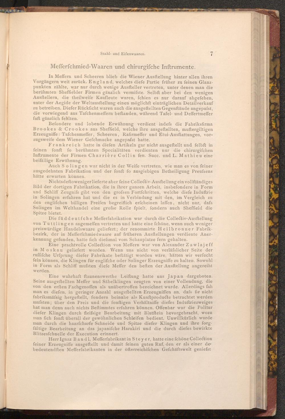 Herr Ignaz Band 1, Mefferfabrikant in Steyer, hatte eine fchöne Collection feiner Erzeugniffe ausgeftellt und damit feinen guten Ruf, den er als einer der bedeutendften Mefferfabrikanten in der öfterreichifchen Gefchäftswelt geniefst
