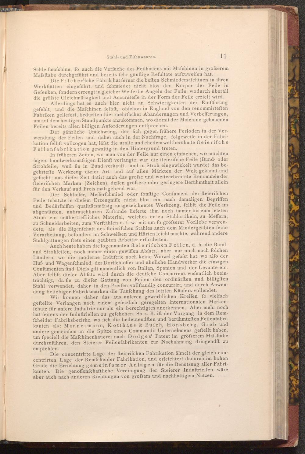 In früheren Zeiten, wo man von der Feile nur einen einfachen, wir möchten fagen, handwerksmäfsigen Dienft verlangte, war die fteierifche Feile( Bund- oder Strohfeile, weil fie in Bund verkauft, und in Stroh eingewickelt wurde) das begehrtefte Werkzeug diefer Art und auf allen Märkten der Welt gekannt und gefucht; aus diefer Zeit datirt auch das grofse und weitverbreitete Renommée der fteierifchen Marken( Zeichen), deffen gröfsere oder geringere Berühmtheit allein für den Verkauf und Preis mafsgebend war.