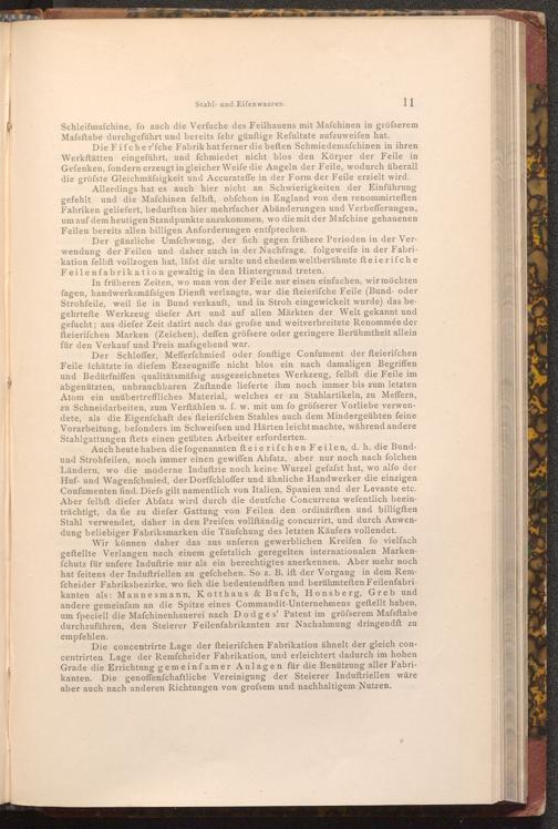 Der gänzliche Umfchwung, der fich gegen frühere Perioden in der Verwendung der Feilen und daher auch in der Nachfrage, folgeweife in der Fabrikation felbft vollzogen hat, läfst die uralte und ehedem weltberühmte fteierifche Feilenfabrikation gewaltig in den Hintergrund treten.