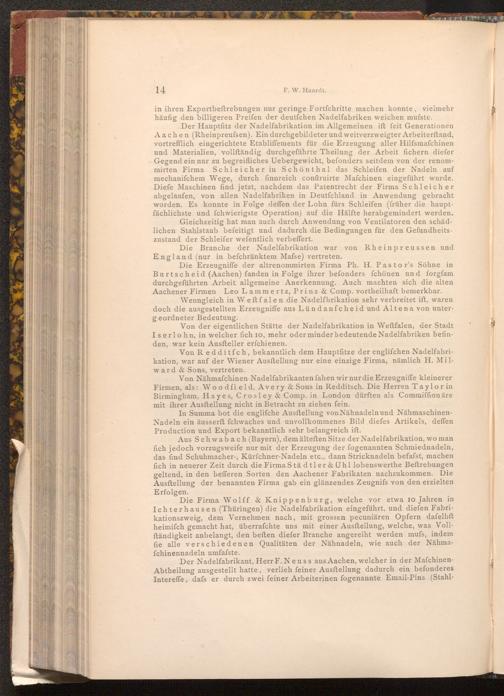in ihren Exportbeftrebungen nur geringe Fortfchritte machen konnte, vielmehr häufig den billigeren Preifen der deutfchen Nadelfabriken weichen musste.
