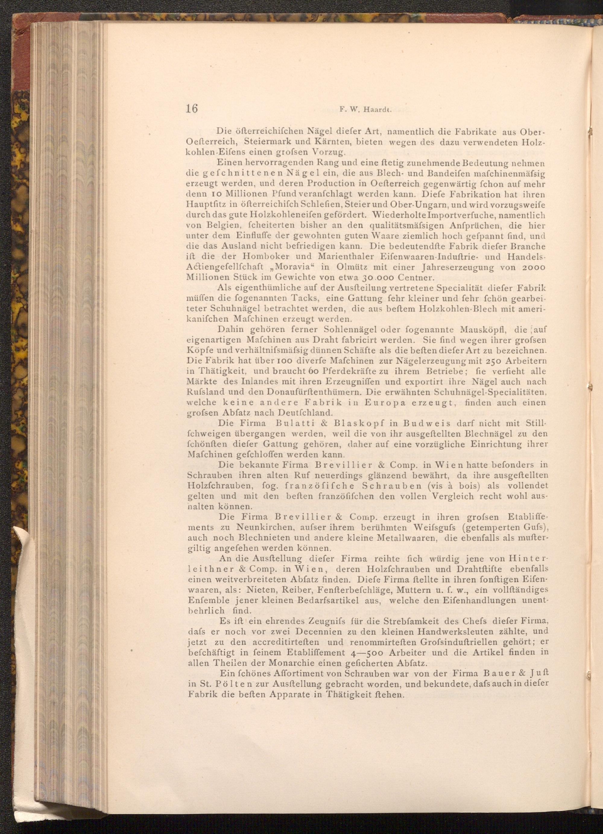 Die bekannte Firma Brevillier& Comp. in Wien hatte befonders in Schrauben ihren alten Ruf neuerdings glänzend bewährt, da ihre ausgeftellten Holzfchrauben, fog. franzöfifche Schrauben( vis à bois) als vollendet gelten und mit den beften franzöfifchen den vollen Vergleich recht wohl aushalten können.