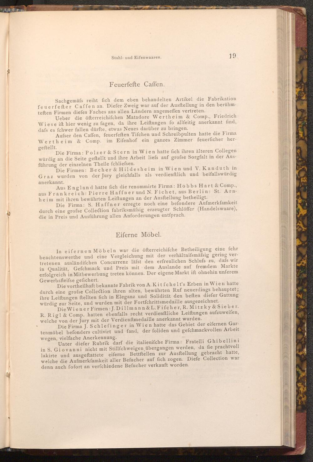Die Firmen: Becher& Hildesheim in Wien und V. Kanduth in Graz wurden von der Jury gleichfalls als verdienftlich und beifallswürdig anerkannt.