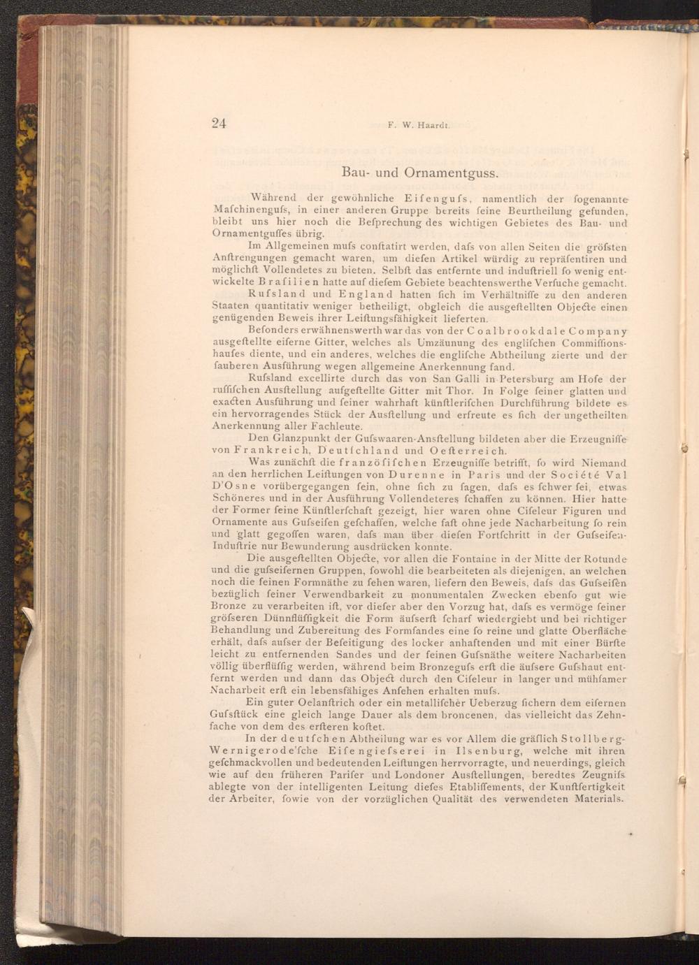 In der deutfchen Abtheilung war es vor Allem die gräflich StollbergWernigerode'fche Eifengiefserei in Ilsenburg, welche mit ihren gefchmackvollen und bedeutenden Leiftungen herrvorragte, und neuerdings, gleich wie auf den früheren Parifer und Londoner Ausftellungen, beredtes Zeugnifs ablegte von der intelligenten Leitung diefes Etabliffements, der Kunftfertigkeit der Arbeiter, fowie von der vorzüglichen Qualität des verwendeten Materials.