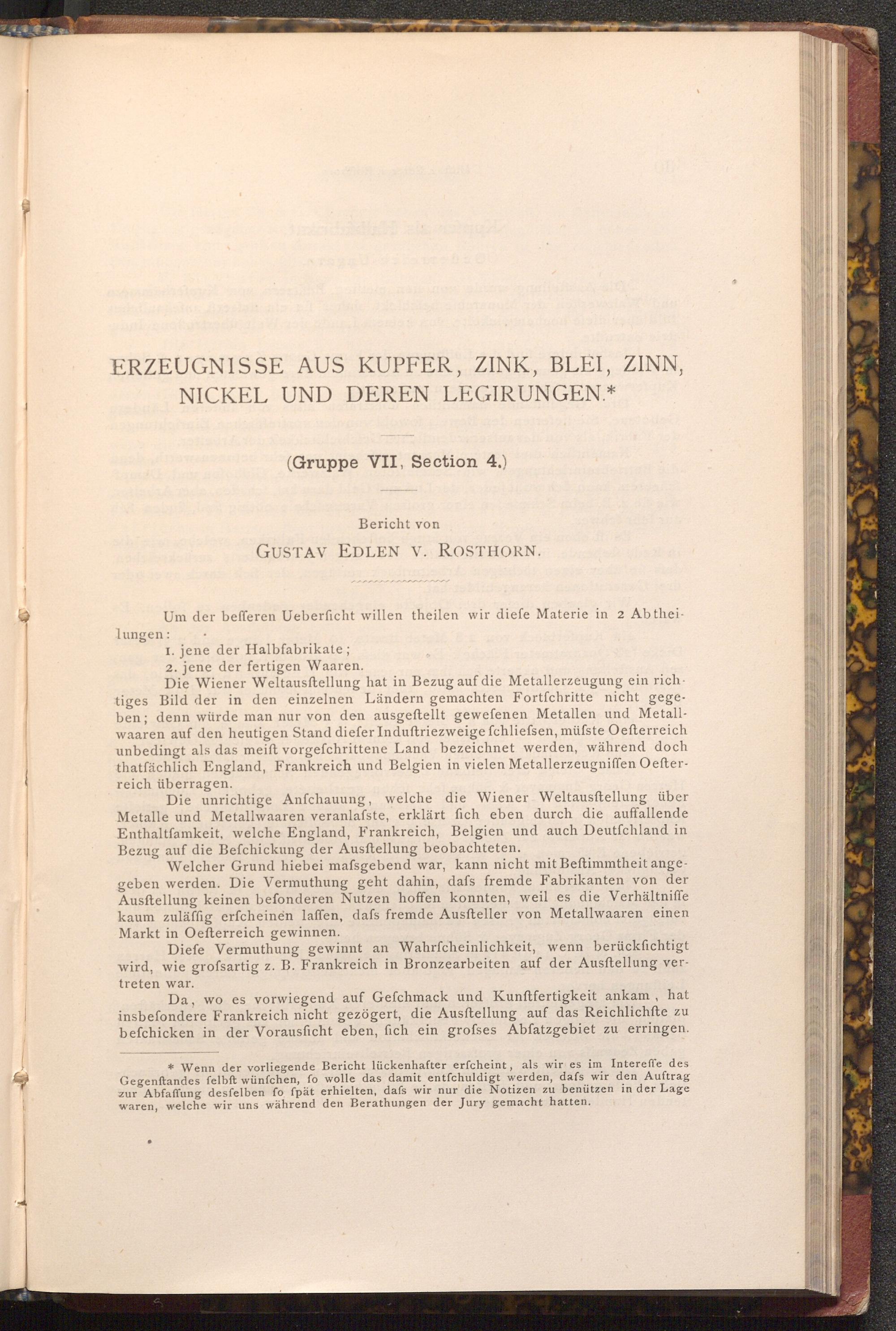 * Wenn der vorliegende Bericht lückenhafter erfcheint, als wir es im Intereffe des Gegenftandes felbft wünſchen, fo wolle das damit entfchuldigt werden, dafs wir den Auftrag zur Abfaffung desfelben fo fpät erhielten, dafs wir nur die Notizen zu benützen in der Lage waren, welche wir uns während den Berathungen der Jury gemacht hatten.