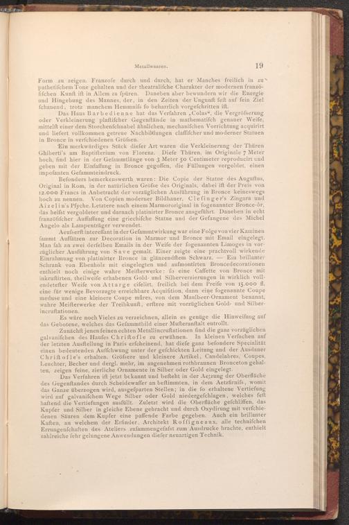 Zunächft jenen feinen echten Metallincruftationen find die ganz vorzüglichen galvanifchen des Haufes Chriftofle zu erwähnen. In kleinen Verfuchen auf