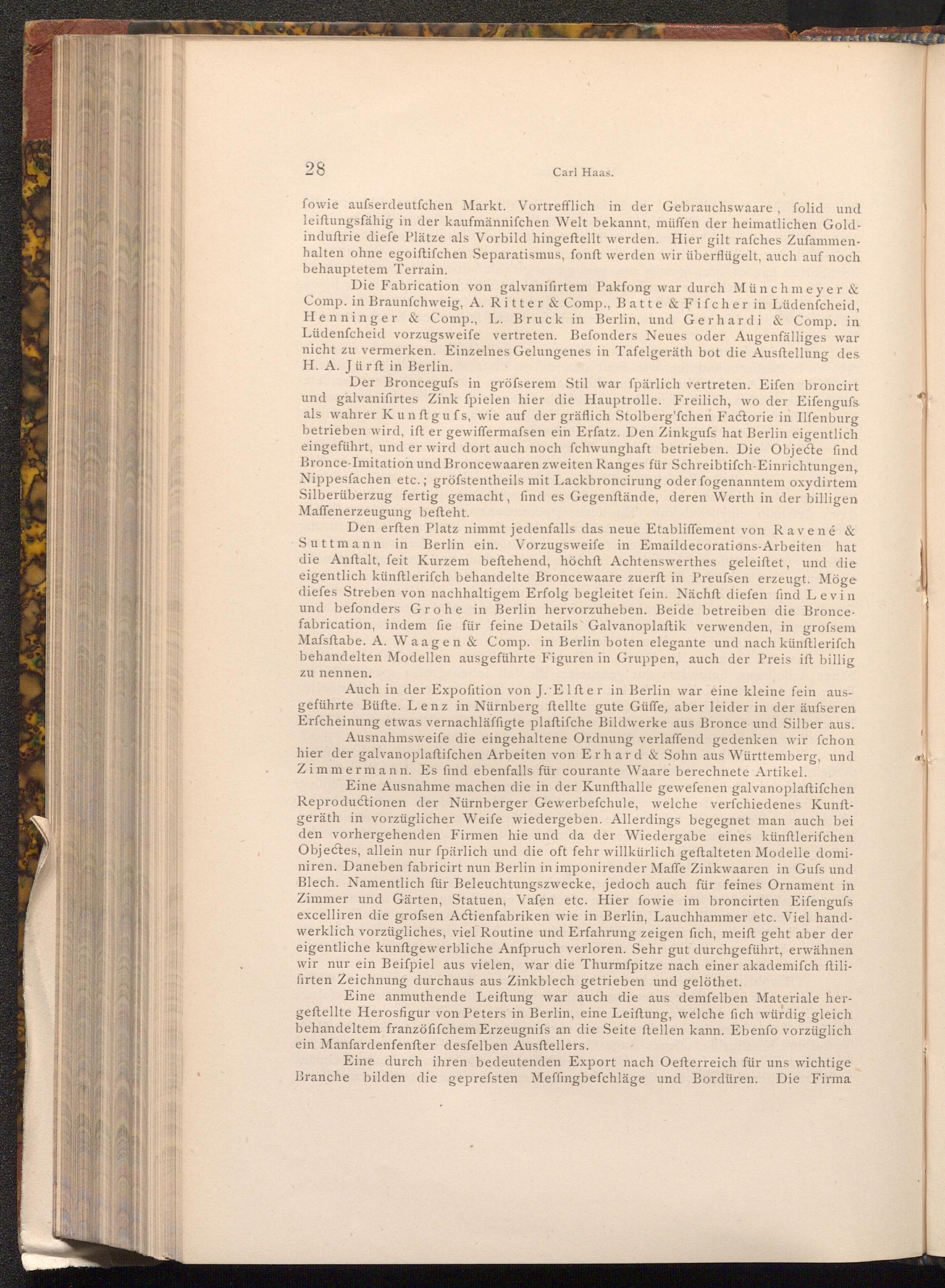 Eine durch ihren bedeutenden Export nach Oefterreich für uns wichtige Branche bilden die geprefsten Meffingbefchläge und Bordüren. Die Firma