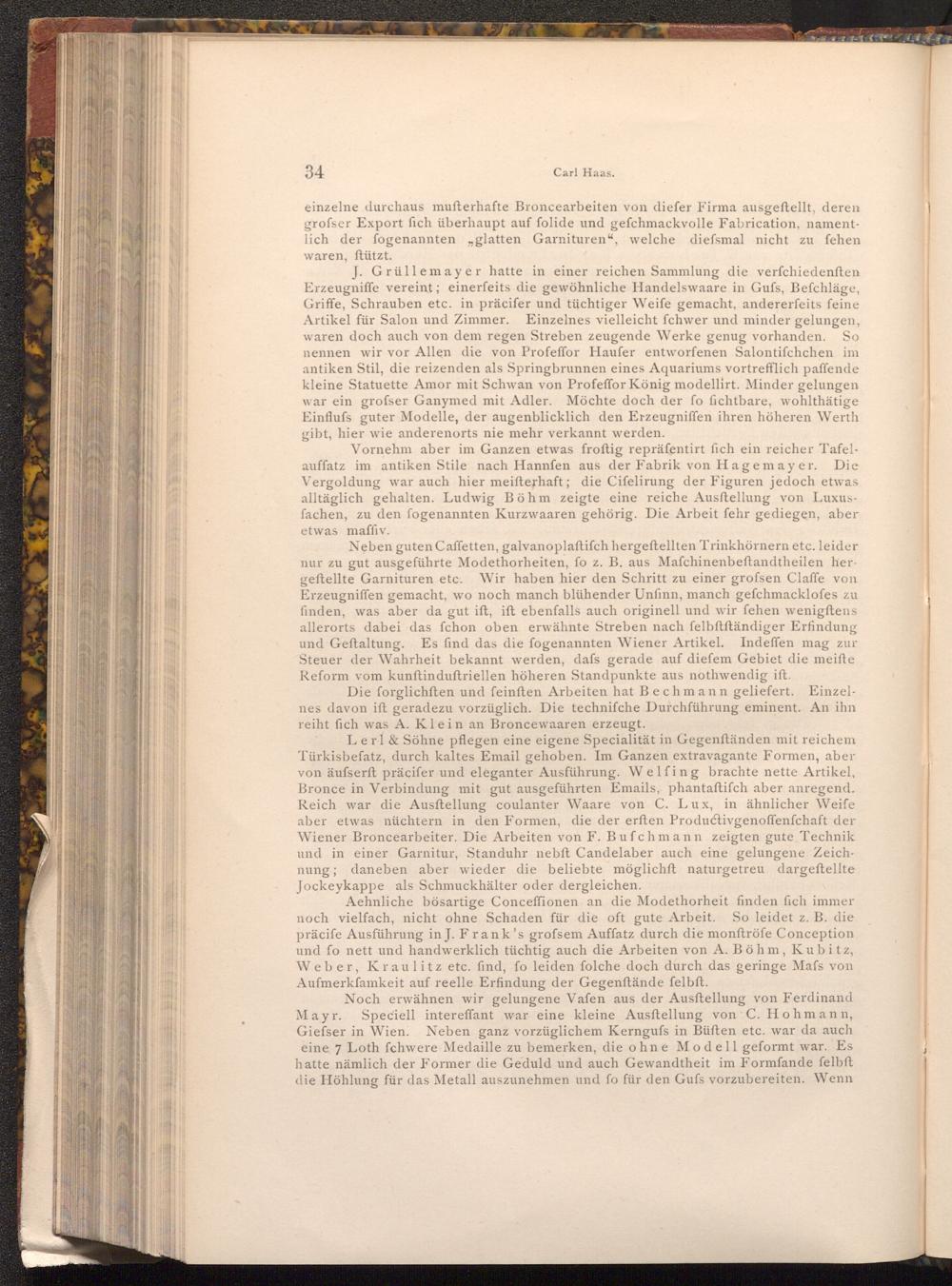 Die forglichften und feinften Arbeiten hat Bechmann geliefert. Einzelnes davon ift geradezu vorzüglich. Die technifche Durchführung eminent. An ihn reiht fich was A. Klein an Broncewaaren erzeugt.