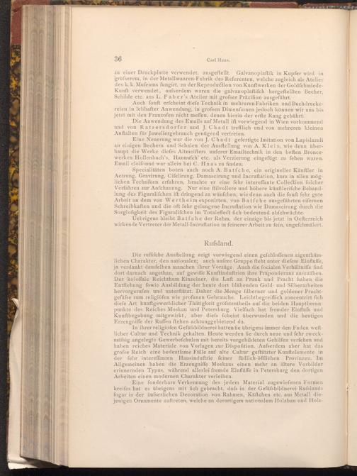 Uebrigens bleibt Batfche der Ruhm, der einzige bis jetzt in Oefterreich wirkende Vertreter der Metall- Incruftation in feinerer Arbeit zu fein, ungefchmälert.