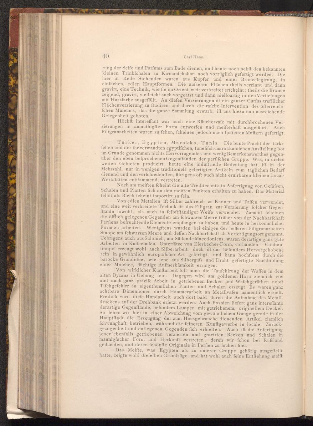 Türkei, Egypten, Marokko, Tunis. Die bunte Pracht der türkifchen und der ihr verwandten egyptifchen, tunefifch- marokkanifchen Ausftellung bot im Grunde genommen nichts Hervorragendes und wenig Bemerkenswerthes gegenüber den eben befprochenen Gegenständen der perfifchen Gruppe. Was, in diefen weiten Gebieten producirt, heute eine induftrielle Bedeutung hat, ift in der Mehrzahl, nur in wenigen traditionell gefertigten Artikeln zum täglichen Bedarf dienend und den verfchiedenften, übrigens oft auch nicht eruirbaren kleinen LocalWerkstätten entftammend, vertreten.