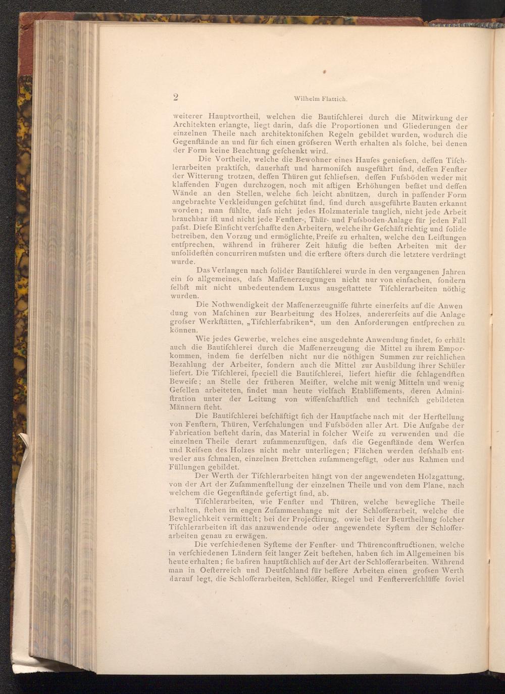 Wie jedes Gewerbe, welches eine ausgedehnte Anwendung findet, fo erhält auch die Bautifchlerei durch die Maffenerzeugung die Mittel zu ihrem Emporkommen, indem fie derfelben nicht nur die nöthigen Summen zur reichlichen Bezahlung der Arbeiter, fondern auch die Mittel zur Ausbildung ihrer Schüler liefert. Die Tifchlerei, fpeciell die Bautifchlerei, liefert hiefür die fchlagendften Beweife; an Stelle der früheren Meifter, welche mit wenig Mitteln und wenig Gefellen arbeiteten, findet man heute vielfach Etabliffements, deren Adminiftration unter der Leitung von wiffenfchaftlich und techniſch gebildeten