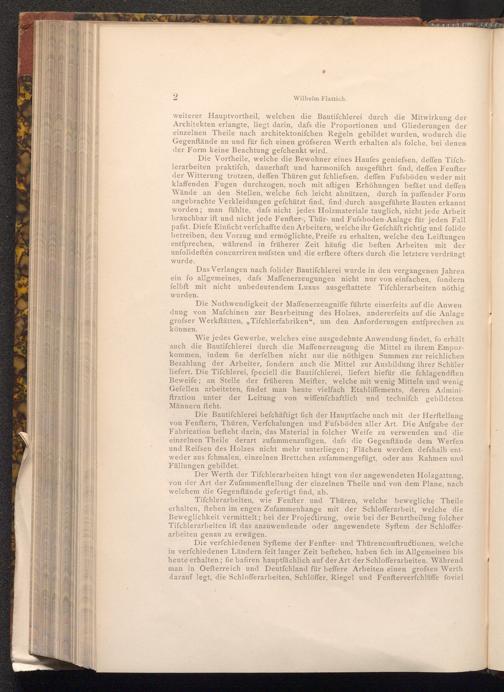 Die Vortheile, welche die Bewohner eines Haufes geniefsen, deffen Tifchlerarbeiten praktifch, dauerhaft und harmoniſch ausgeführt find, deffen Fenfter der Witterung trotzen, deffen Thüren gut fchliefsen, deffen Fufsböden weder mit klaffenden Fugen durchzogen, noch mit aftigen Erhöhungen befäet und deffen Wände an den Stellen, welche fich leicht abnützen, durch in paffender Form angebrachte Verkleidungen gefchützt find, find durch ausgeführte Bauten erkannt worden; man fühlte, dafs nicht jedes Holzmateriale tauglich, nicht jede Arbeit brauchbar ift und nicht jede Fenfter-, Thür- und Fufsboden- Anlage für jeden Fall pafst. Diefe Einficht verfchaffte den Arbeitern, welche ihr Gefchäft richtig und folide betreiben, den Vorzug und ermöglichte, Preife zu erhalten, welche den Leiftungen entſprechen, während in früherer Zeit häufig die beften Arbeiten mit der unfolideften concurriren mufsten und die erftere öfters durch die letztere verdrängt wurde.