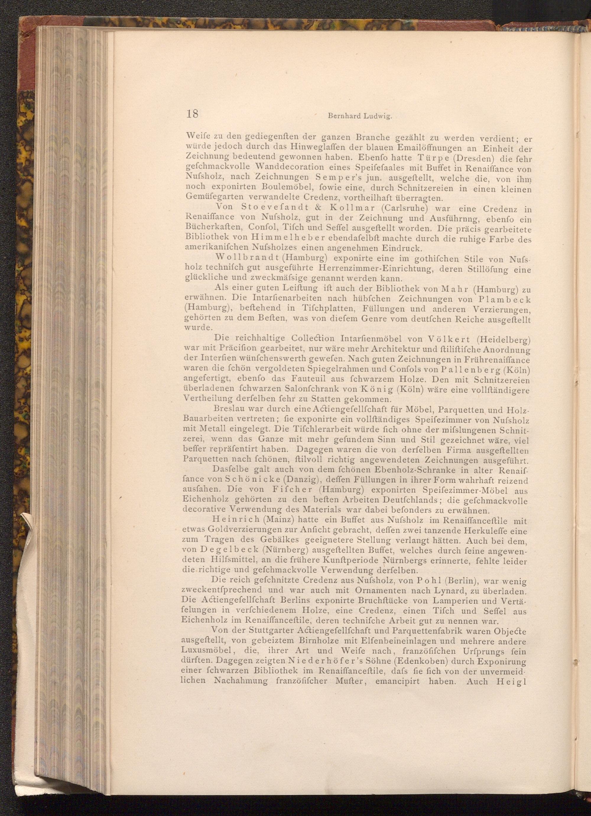 Als einer guten Leiftung ift auch der Bibliothek von Mahr( Hamburg) zu erwähnen. Die Intarfienarbeiten nach hübfchen Zeichnungen von Plambeck ( Hamburg), beftehend in Tifchplatten, Füllungen und anderen Verzierungen, gehörten zu dem Beften, was von diefem Genre vom deutfchen Reiche ausgeftellt