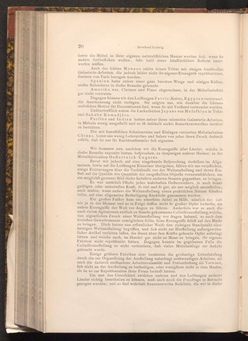Ein grofser Factor kam uns einerfeits dabei zu Hilfe, nämlich der, dafs wir ja in der Heimat und es in Folge deffen nicht fo grofser Opfer bedurfte, um unfere Erzeugniffe der Welt vor Augen zu führen. Anderfeits war es auch die nach vielen Agitationen endlich zu Stande gekommene Collectivausftellung, welche, den eigentlichen Zweck einer Weltausftellung vor Augen habend, es auch dem kleinften Gewerbsmanne ermöglichen follte, feine Erzeugniffe felbft auf den Markt zu bringen. Diefe hatten nun erfreulicher Weife den richtigen Standpunkt einer heutigen Weltausftellung begriffen, und fich nicht zur Herstellung aufsergewöhnlicher Artikel verleiten laffen, die ihnen über ihre Kräfte gehende Opfer auferlegt hätten und welche auch, im Handel gar nicht an Mann zu bringen, ihr eigenes Fabricat nicht repräfentirt hätten. Dagegen konnte im gegebenen Falle die Collectivausftellung es nicht verhindern, dafs vieles Mittelmäfsige zur Anficht gebracht wurde.