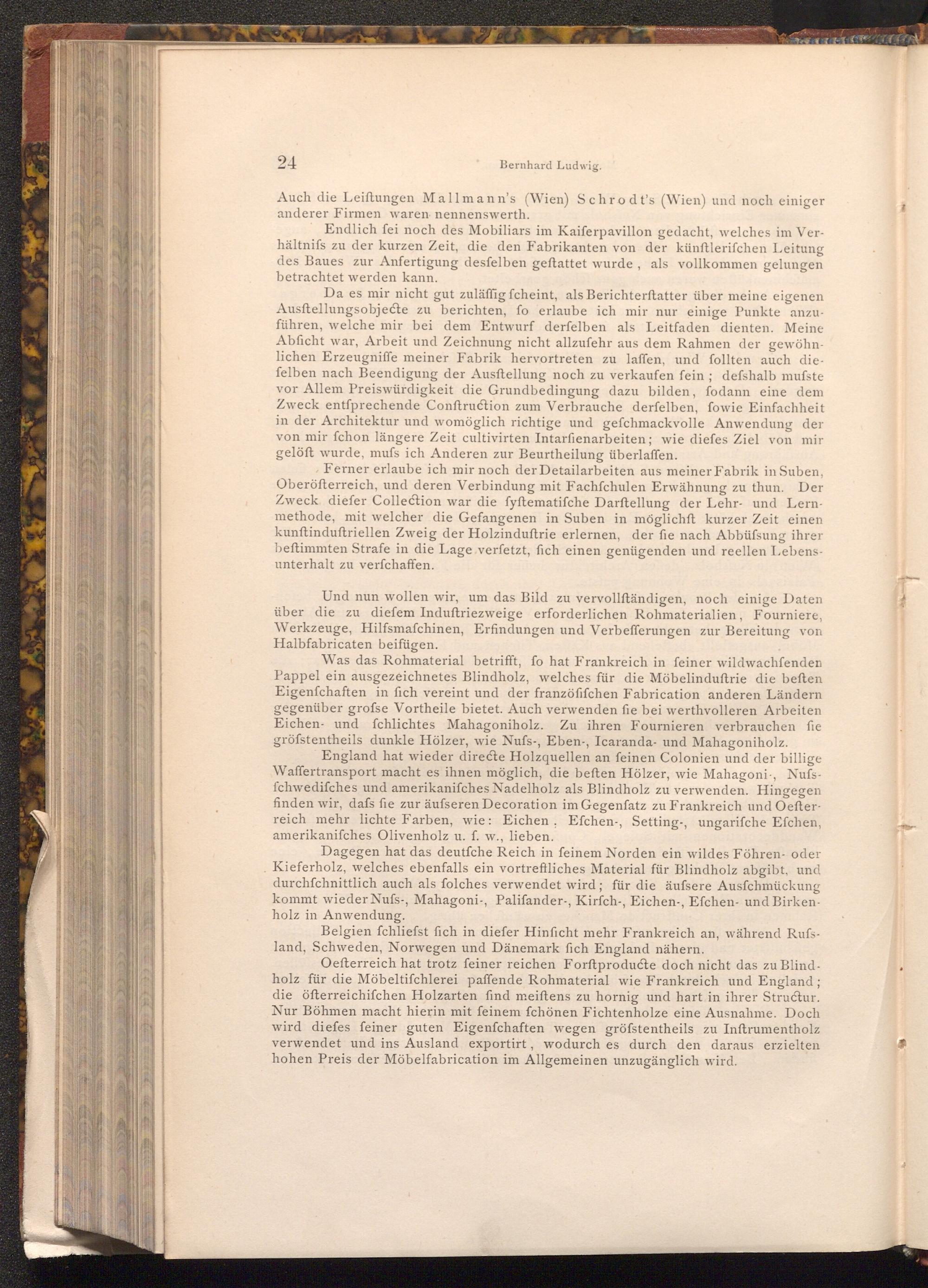 Oefterreich hat trotz feiner reichen Forftproducte doch nicht das zu Blindholz für die Möbeltifchlerei paffende Rohmaterial wie Frankreich und England; die öfterreichifchen Holzarten find meiftens zu hornig und hart in ihrer Structur. Nur Böhmen macht hierin mit feinem fchönen Fichtenholze eine Ausnahme. Doch wird diefes feiner guten Eigenfchaften wegen gröfstentheils zu Inftrumentholz verwendet und ins Ausland exportirt, wodurch es durch den daraus erzielten hohen Preis der Möbelfabrication im Allgemeinen unzugänglich wird.