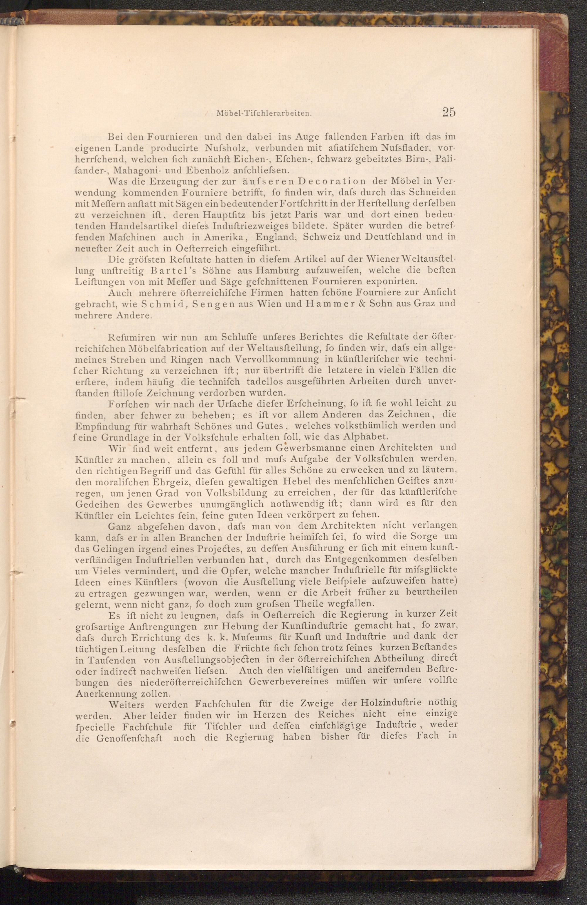 Es ift nicht zu leugnen, dafs in Oefterreich die Regierung in kurzer Zeit grofsartige Anftrengungen zur Hebung der Kunftinduftrie gemacht hat, fo zwar, dafs durch Errichtung des k. k. Muſeums für Kunft und Induftrie und dank der tüchtigen Leitung desfelben die Früchte fich fchon trotz feines kurzen Beftandes in Taufenden von Ausftellungsobjecten in der öfterreichifchen Abtheilung direct oder indirect nachweifen liefsen. Auch den vielfältigen und aneifernden Beftrebungen des niederöfterreichifchen Gewerbevereines müffen wir unfere vollfte Anerkennung zollen.