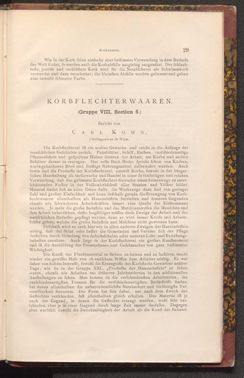 Die Korbflechterei ift ein uraltes Gewerbe und reicht in die Anfänge der menfchlichen Gefchichte zurück. Palmblätter, Schilf, Ruthen, verfchiedenartige Pflanzenfafern und gefpaltene Hölzer dienten der Arbeit, um Körbe und andere Behälter daraus zu erzeugen. Das erfte Buch Mofes fpricht fchon von Körben, worin gebackenes Brod und fonftige Nahrungsmittel aufbewahrt wurden. Auch heute find die Producte der Korbflechterei, zumeift Körbe, fowohl in der bürgerlichen Haushaltung als im Gewerbe und Handel in einer fo'vielfeitigen und reichen Verwendung, dafs das gefammte Korbflechter- Gewerbe einen keineswegs zu unter fchätzenden Factor in der Volkswirthfchaft aller Staaten und Völker bildet. Material findet fich an allen Orten dafür, die Werkzeuge dazu find von geringer Zahl und grofser Einfachheit und kann defshalb gerade die Erzeugung von Korbflechtwaaren allenthalben als Hausinduftrie betrieben und ärmeren Gegenden ebenfo wie fchwächeren Arbeitskräften immer eine Quelle des Einkommens werden. Je mehr die grofse Induftrie und das Mafchinenwefen die Menfchen und ihre Arbeit beherrfchen, defto forgfältiger müffen diefe Zweige der Arbeit und des menfchlichen Bedarfes gepflegt werden, denn es wird immer Kreife und Arbeitskräfte geben, welche die grofse Induftrie und Mafchine nicht gewinnen kann.