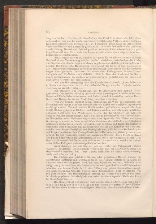 Höchft intereffant war nach all' diefen Momenten die Ausftellung der öfterreichifchen Korbflechter, an der fich fieben der erften Wiener Firmen und die einzelnen Provinzen betheiligten. Man fand hier die einfachften Körbe,