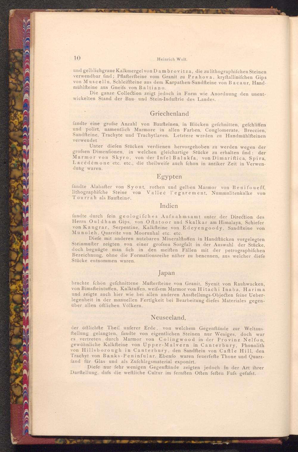 der öftlichfte Theil unferer Erde, von welchem Gegenftände zur Weltausftellung gelangten, fandte von eigentlichen Steinen nur Weniges, doch war es vertreten durch Marmor von Colingwood in der Provinz Nelfon, gewöhnliche Kalksteine von Upper- Malvern in Canterbury, Phonolith von Hillsborough in Canterbury, den Sandſtein von Caftle Hill, den Trachyt von Banks-Peninfular. Ebenfo waren feuerfefte Thone und Quarzfand für Glas und als Zuſchlagsmaterial exponirt.