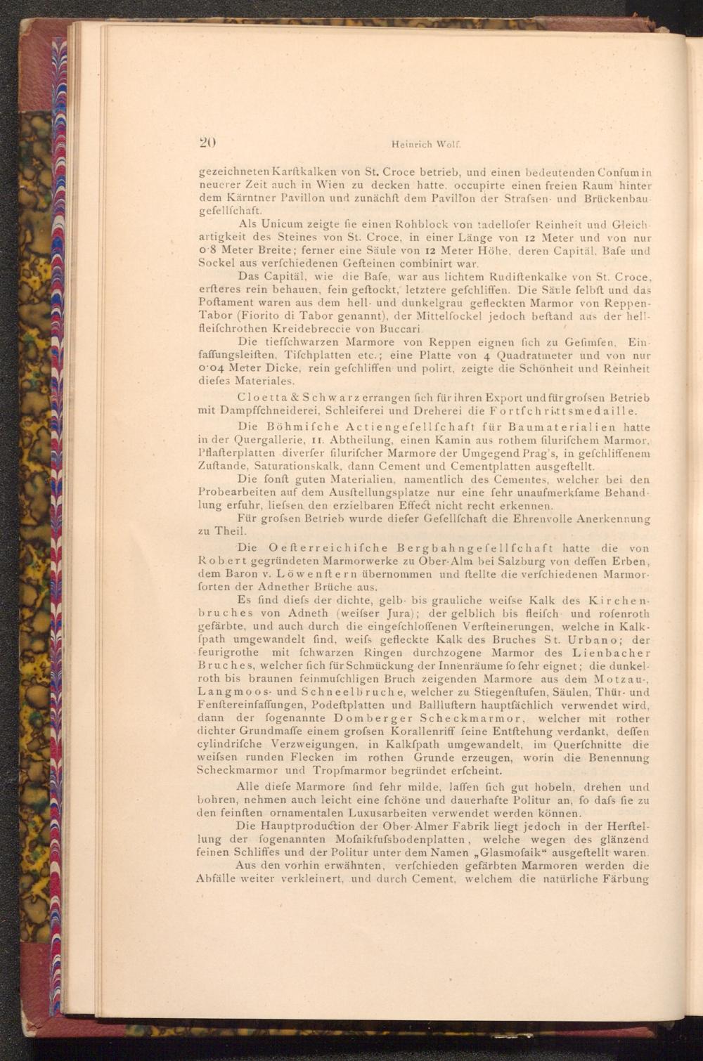 Die Oefterreichifche Bergbahngefellfchaft hatte die von Robert gegründeten Marmorwerke zu Ober- Alm bei Salzburg von deffen Erben, dem Baron v. Löwenftern übernommen und ftellte die verfchiedenen Marmorforten der Adnether Brüche aus.