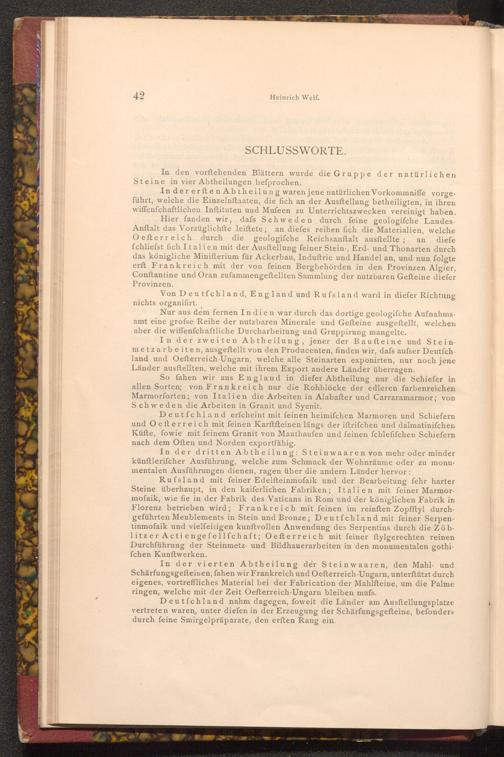Nur aus dem fernen Indien war durch das dortige geologifche Aufnahmsamt eine grofse Reihe der nutzbaren Minerale und Gefteine ausgeftellt, welchen aber die wiffenfchaftliche Durcharbeitung und Gruppirung mangelte.