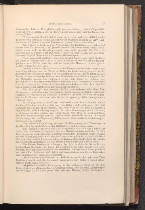 Zur höchften Entwicklung gelangte, die Verwendung der Thonwaare zu den Zwecken der Architektur in den Klofterhöfen und Kirchenfaçaden.
