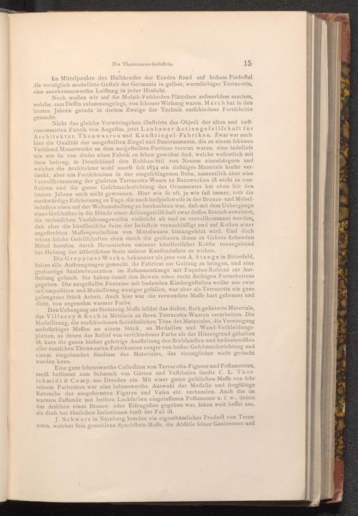 J. Schwarz in Nürnberg brachte ein eigenthümliches Product von Terracotta, welcher fein gemahlene Speckſtein- Maffe, die Abfälle feiner Gasbrenner und
