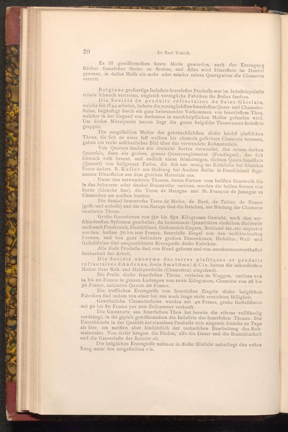 Die trefflichen Erzeugniffe von feuerfeften Ziegeln diefer belgifchen Fabriken find zudem von einer bei uns noch lange nicht erreichten Billigkeit.
