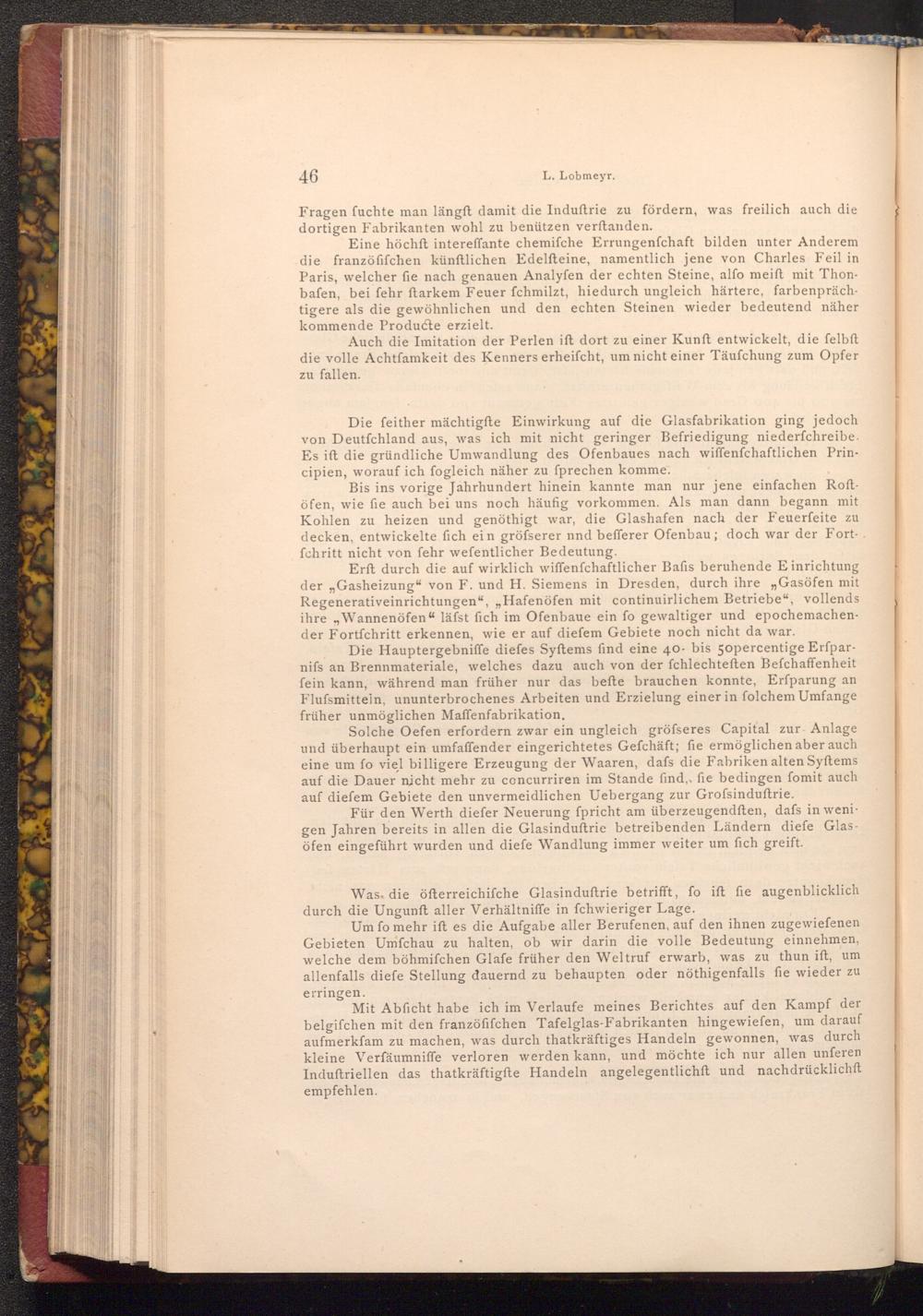 Um fo mehr ift es die Aufgabe aller Berufenen, auf den ihnen zugewiefenen Gebieten Umfchau zu halten, ob wir darin die volle Bedeutung einnehmen, welche dem böhmifchen Glafe früher den Weltruf erwarb, was zu thun ift, um allenfalls diefe Stellung dauernd zu behaupten oder nöthigenfalls fie wieder zu erringen.