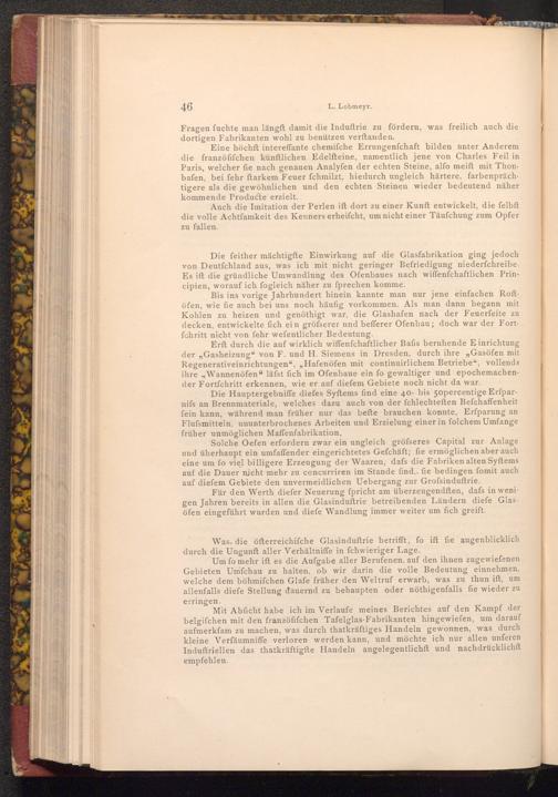 Die feither mächtigfte Einwirkung auf die Glasfabrikation ging jedoch von Deutſchland aus, was ich mit nicht geringer Befriedigung niederfchreibe. Es ift die gründliche Umwandlung des Ofenbaues nach wiffenfchaftlichen Principien, worauf ich fogleich näher zu fprechen komme.